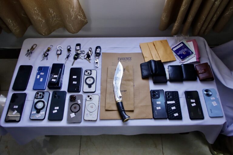 १५ माघमा पक्राउ परेका विनय तामाङको गिरोहबाट बरामद सामान। तस्बिर: नेपाल फोटो लाइब्रेरी