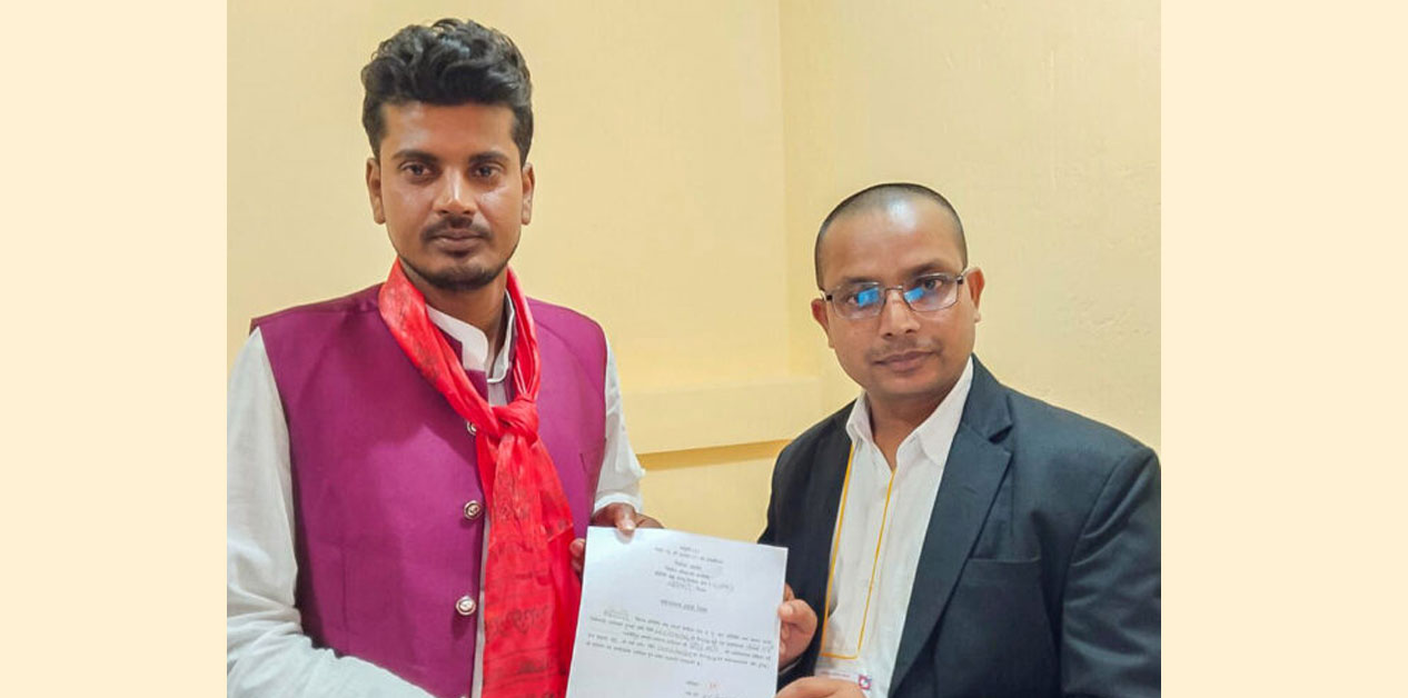महोत्तरी क्षेत्र नम्बर-१ बाट उम्मेदवारी दर्ता गराउँदै वीरेन्द्र महतो।