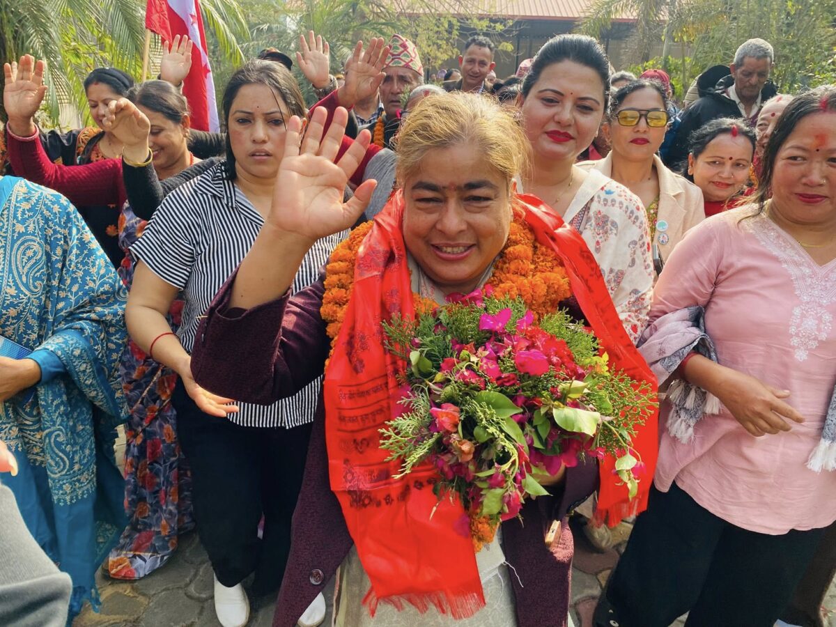 चुनाव प्रचारका क्रममा चितवन- २ की कांग्रेस उम्मेदवार मीना खरेल।