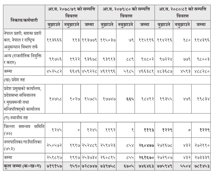 त्यसो त केन्द्रले सम्पत्ति विवरण नबुझाउने पाँच हजार ५०४ जना कर्मचारीको विवरण अख्तियारमा पठाएको छ। भ्रष्टाचार निवारण ऐनको दफा ५० बमोजिम हरेक राष्ट्रसेवकको सम्पत्ति विवरणको अनुगमन गर्ने जिम्मा पनि सतर्कता केन्द्रकै हो।