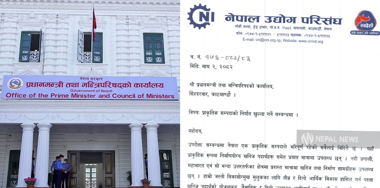 नेपाल उद्योग परिसंघले प्रधानमन्त्री तथा मन्त्रिपरिषद्को कार्यालयलाई पठाएको पत्र।