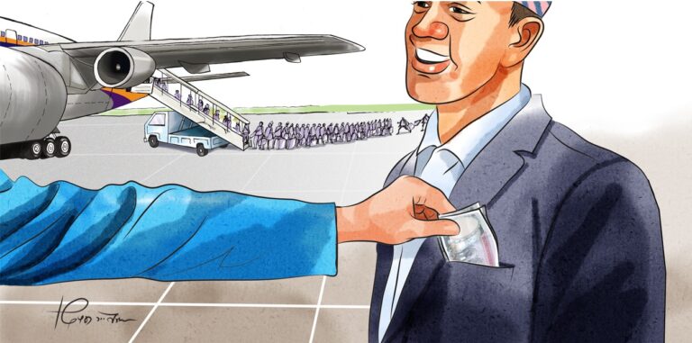 – भिजिट भिसाको दुरुपयोगमा कर्मचारी र वैदेशिक रोजगार व्यवसायीहरूबीचको अदृश्य साँठगाँठ अझै नियन्त्रण गर्न नसकिएको अवस्था छ। नक्कली श्रम स्वीकृति, नक्कली भिसाको प्रयोग पूर्ण रूपमा निरुत्साहित हुन सकेको छैन। वैदेशिक रोजगारसम्बन्धी ठगी र अनियमितताका घटनामा कमी आउन सकेको छैन। – देशभित्र र विदेशमा पनि बिचौलियाहरूको सञ्जाल सक्रिय छ। कर्मचारी, वैदेशिक रोजगार व्यवसायी, शैक्षिक परामर्शदाता, ट्राभल … Continue reading सरकारकै छानबिनले देखाएको अध्यागमनको बेथिति