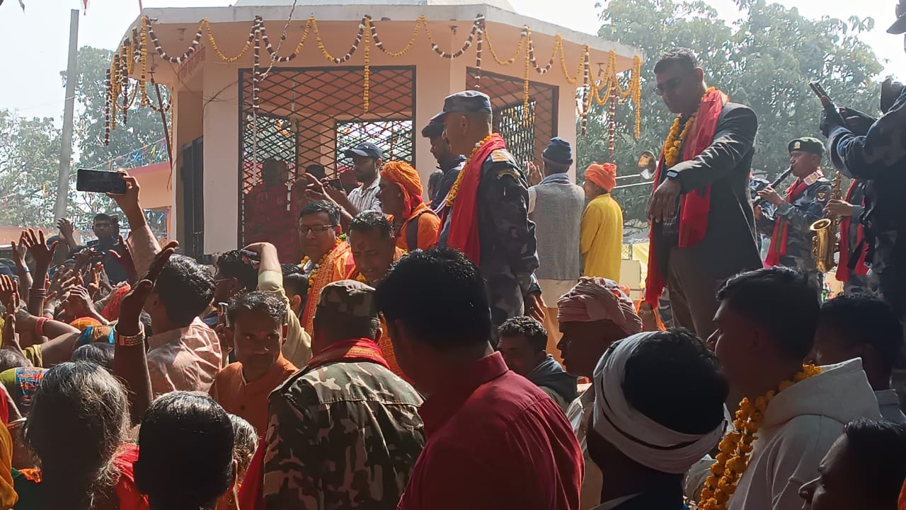 धनुषाको कचुरीस्थानबाट भगवान् राम र माता जानकीको उत्सव प्रतिमासहित निकालिएको मिथिलाबिहारी डोलासहित परिक्रमामा हजारौँ पदयात्री सहभागी