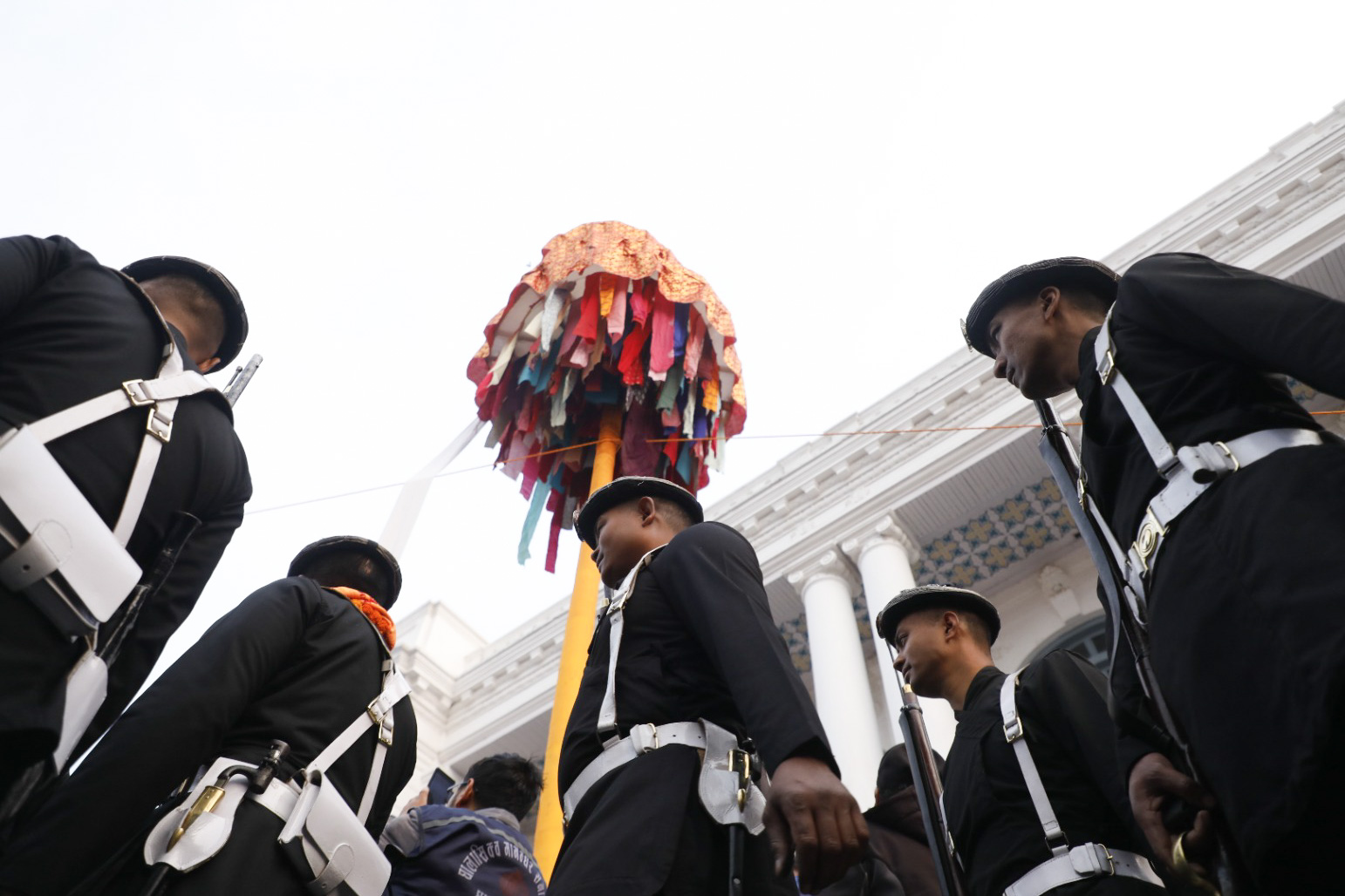 काठमाडौं। काठमाडौंको बसन्तपुरमा होलीको चीर ठड्याइएको छ। मंगलबार बिहान रंगीविरंगी कपडाहरुको ध्वजापताकासहितको तीन खण्डे चीर ठड्याइएको हो।