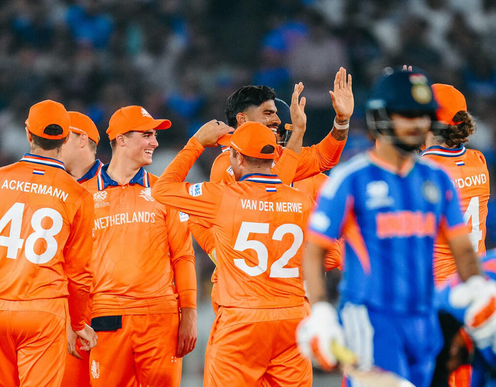 नेदरल्यान्ड र भारतका खेलाडी। तस्बिर : आइसीसी