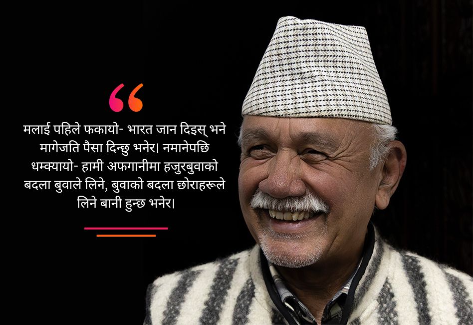 आफूलाई अमेरिकाले लैजान खोजेको थाहा पाएपछि नुर पनि डराए। उनले नेपाल प्रहरीका अधिकारीहरूलाई घुसको प्रस्ताव गर्न थालेका थिए। त्यो घटना सम्झँदै थापा भन्छन्, “मलाई पहिले फकायो- भारत जान दिइस् भने मागेजति पैसा दिन्छु भनेर। नमानेपछि धम्क्यायो- हामी अफगानीमा हजुरबुवाको बदला बुवाले लिने, बुवाको बदला छोराहरूले लिने बानी हुन्छ भनेर।”