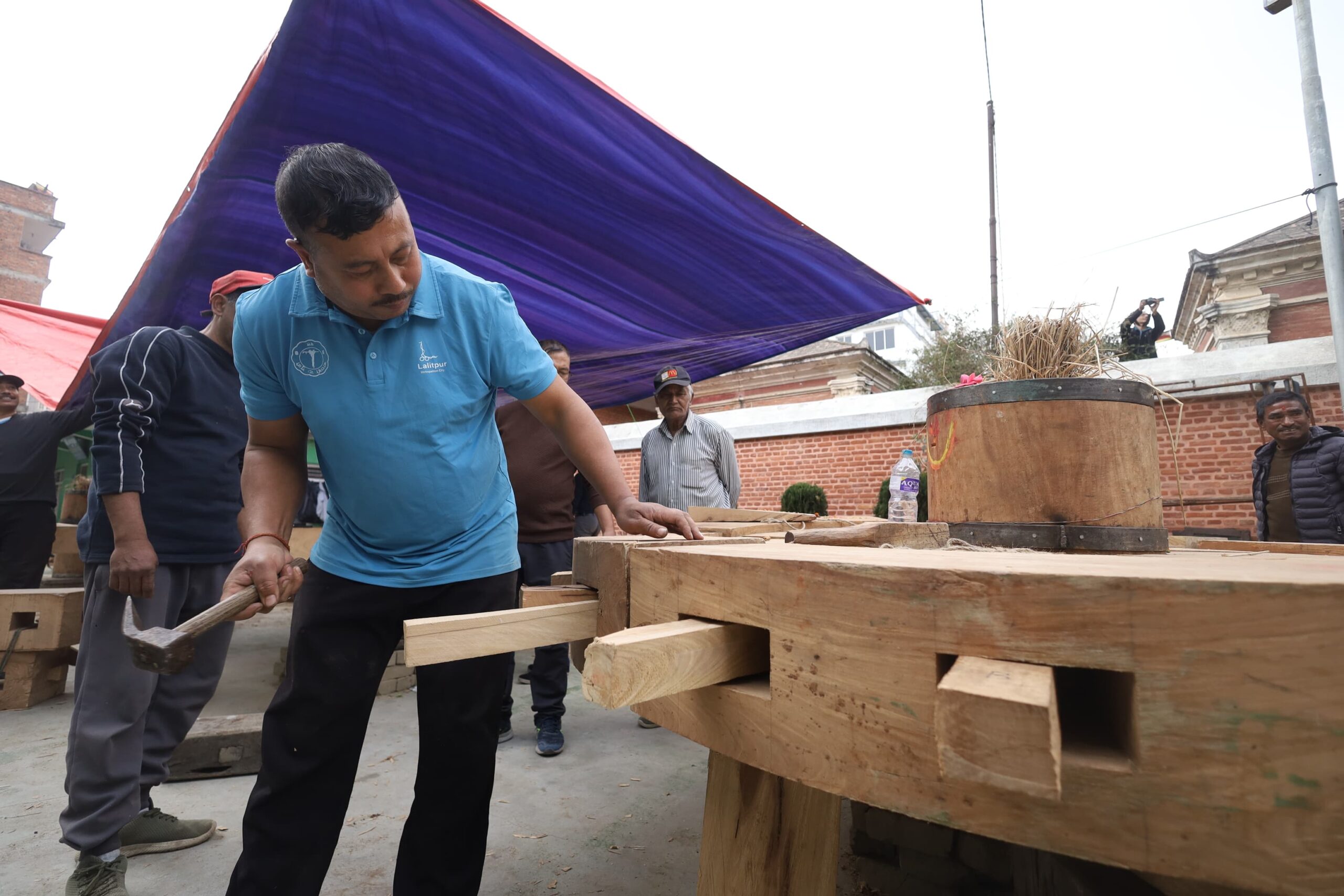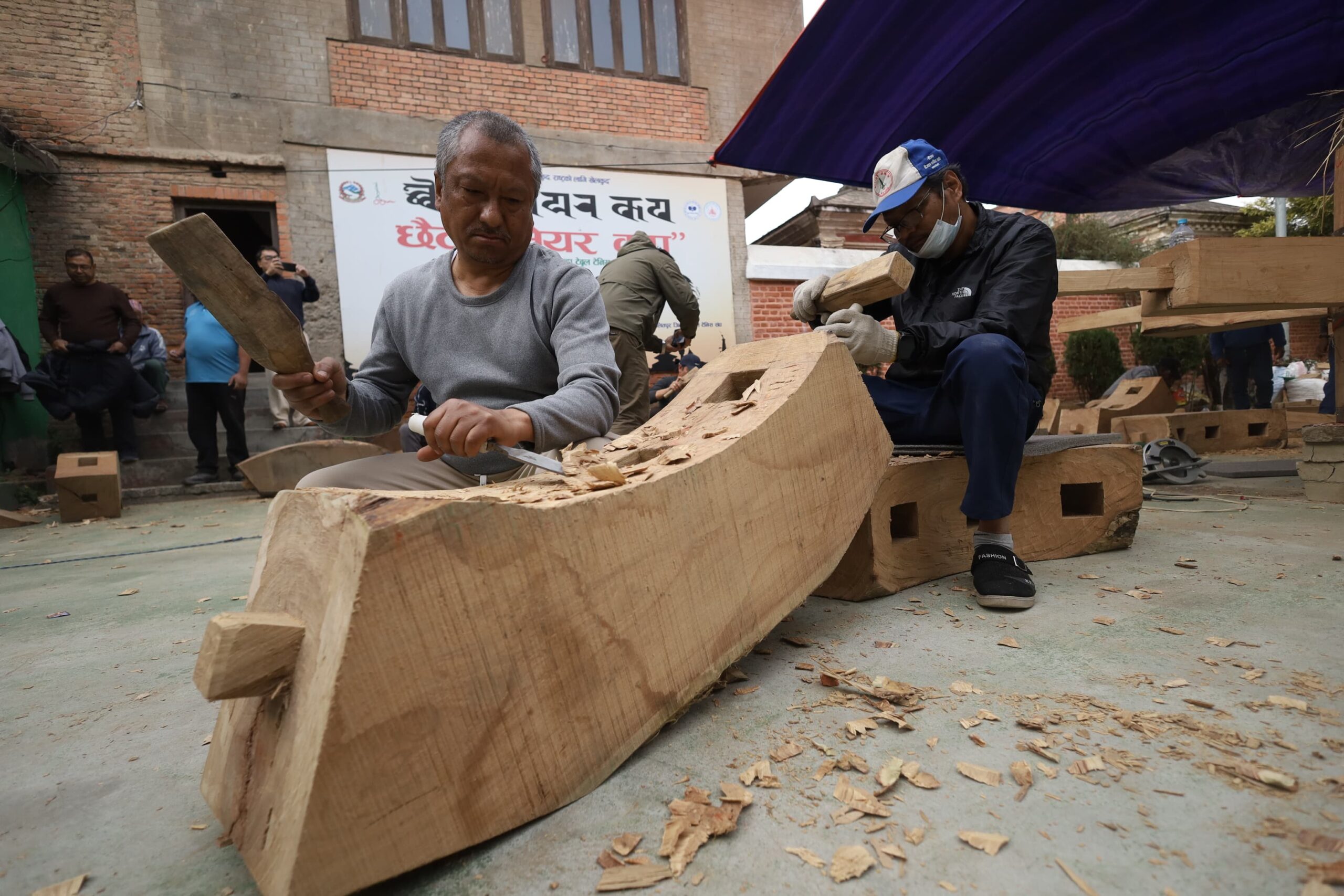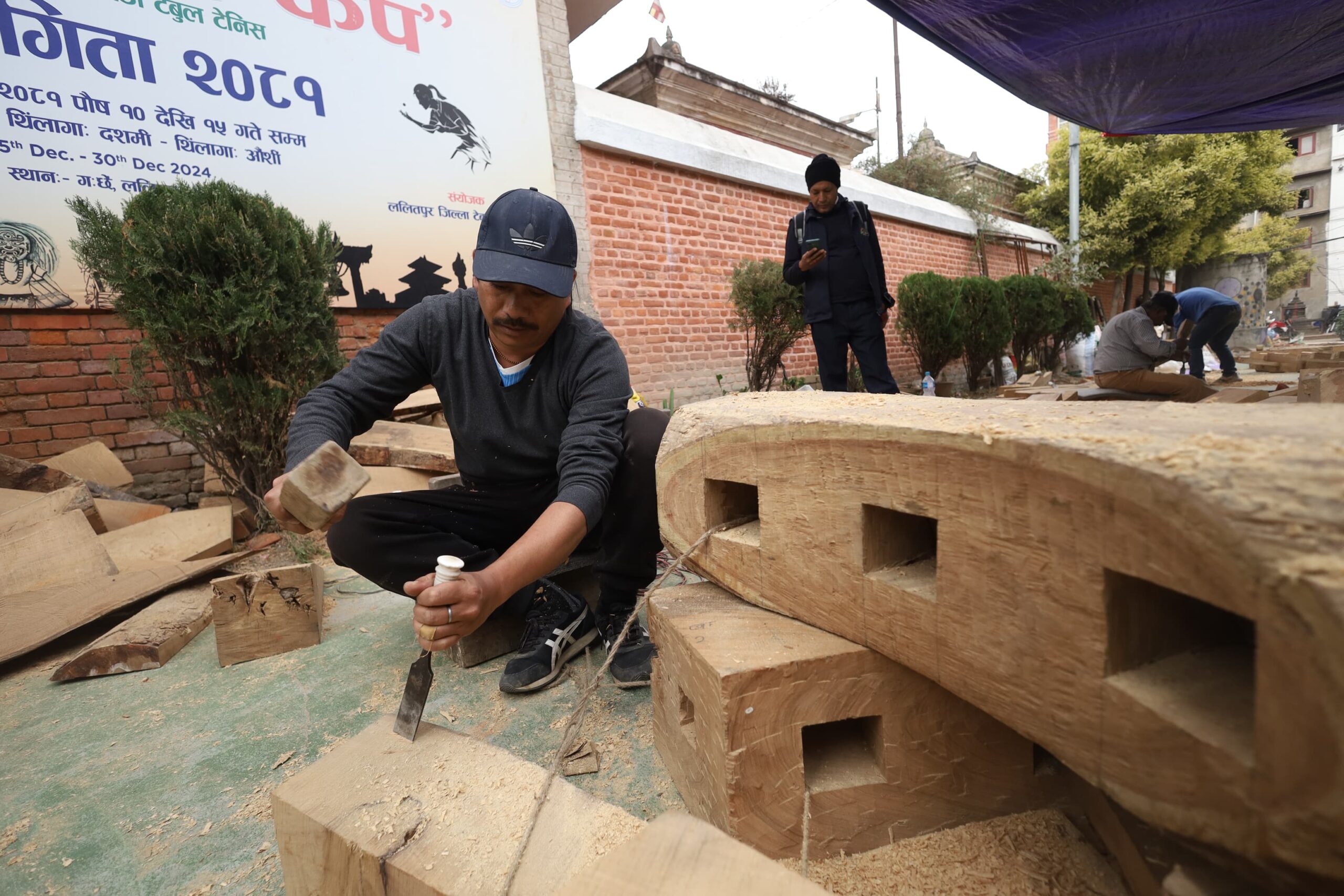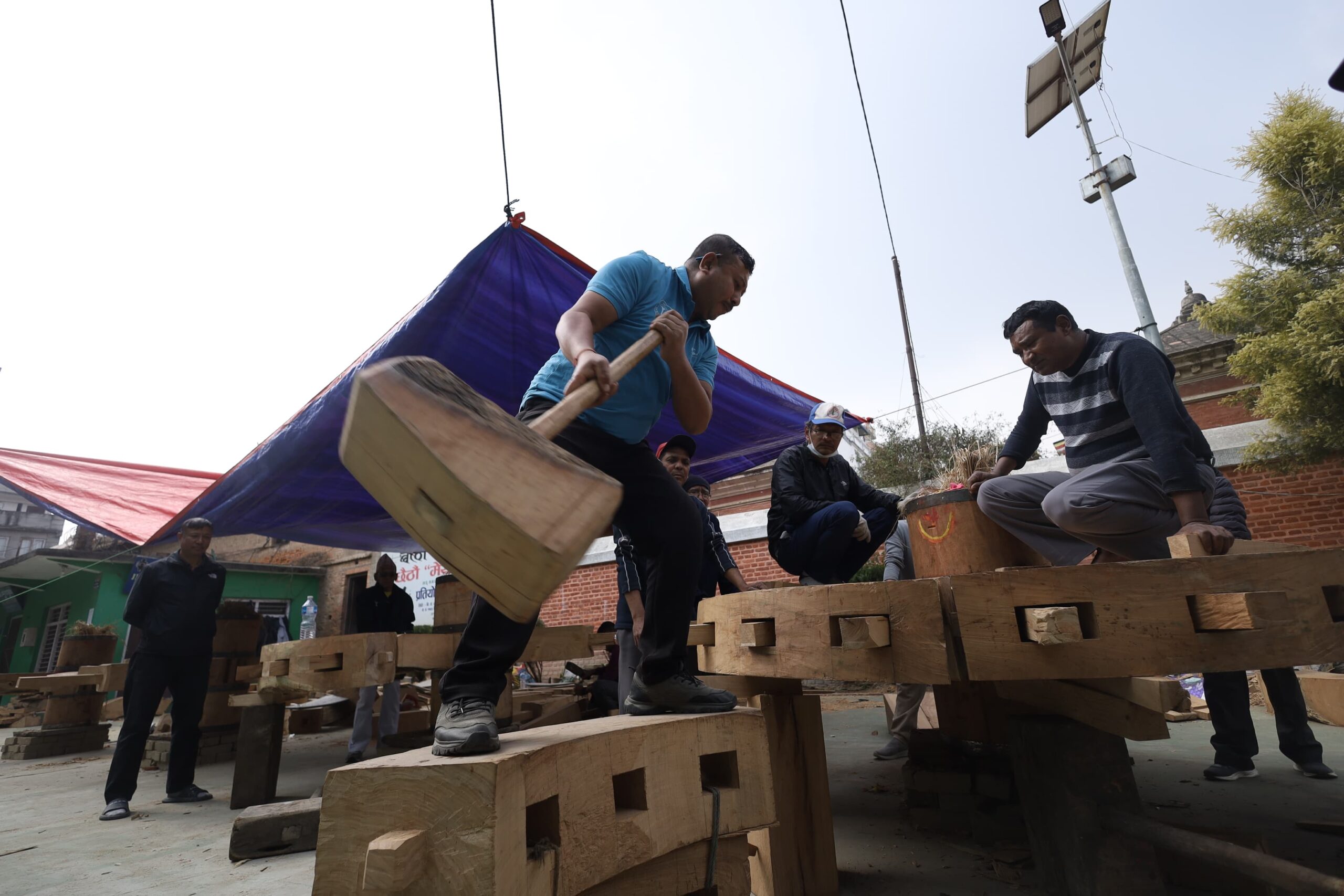 काठमाडौँ। जेन-जी आन्दोलनका क्रममा जलेर क्षतिग्रस्त बनेको रातो मछिन्द्रनाथको रथको पाङ्ग्रा अहिले निर्माण भइरहेको छ।