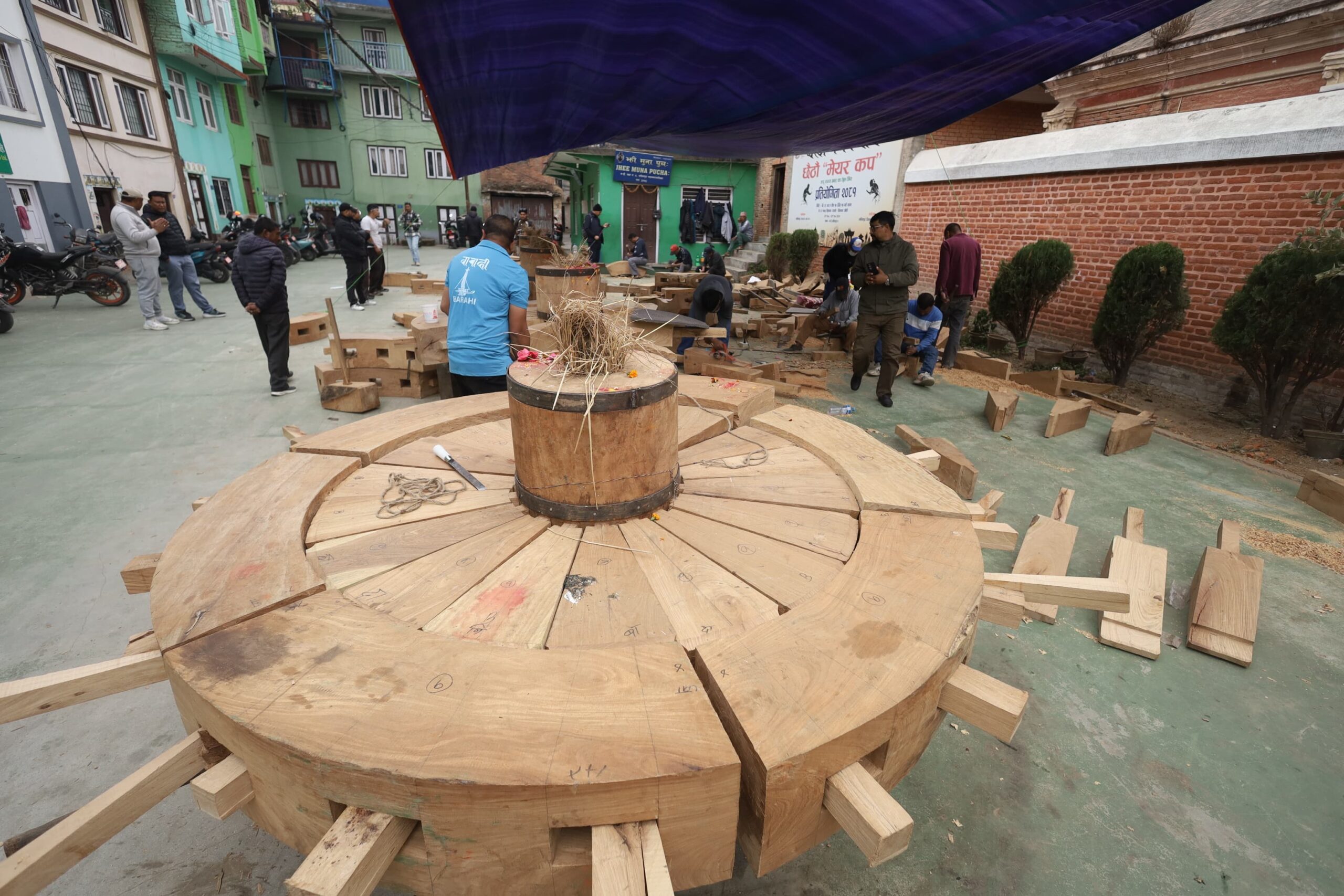 परम्परागत रूपमा १२ वर्षमा बनाइने यो पाङ्ग्रा आकस्मिक रूपमा बिग्रिएमा मात्र निर्माण गरिन्छ। आन्दोलनका क्रममा आगलागी भएर दुईवटा पाङ्ग्रा नष्ट भएपछि निर्माण प्रक्रिया थालिएको हो।