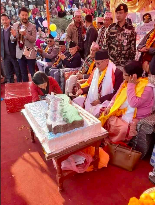 जन्मदिनमा नेपालको नक्सा भएको केक काटिरहेका ओली