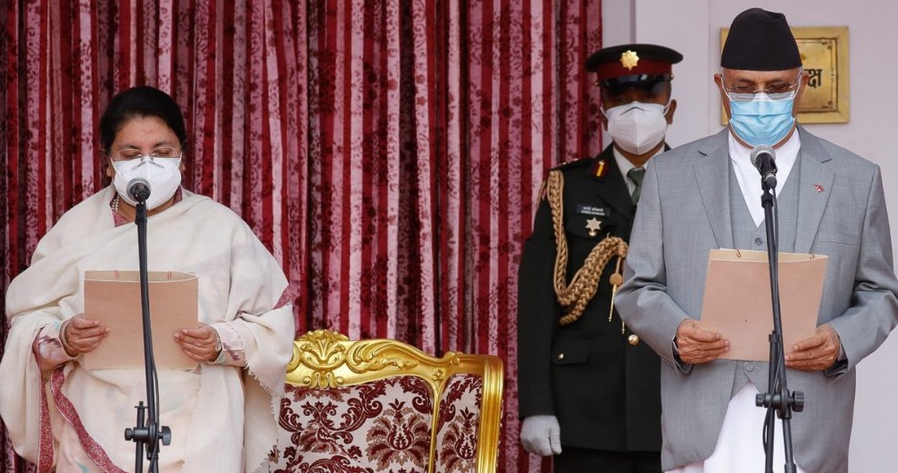 नवनियुक्त प्रधानमन्त्री ओलीलाई शपथ खुवाउने क्रममा तत्कालीन राष्ट्रपति विद्यादेवी भण्डारीले शपथको व्यहोरा पढिन्। त्यसलाई दोहोर्याउने क्रममा ओलीले ‘यो प्रतिज्ञा गर्छु कि’ भन्ने वाक्यांश छुटाए। राष्ट्रपति भण्डारीले दोहोर्याएर वाचन गरेपछि ओलीले भनिदिए, ‘त्यो पर्दैन।’