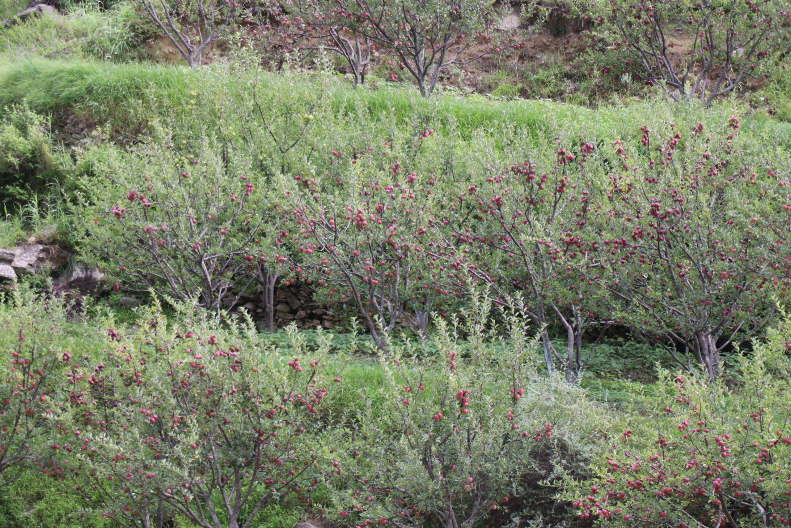 जुम्लाको तिला गाउँपालिका–३ स्थित कर्णाली राजमार्गको छेउमा रहेको स्याउ बगैँचा। तस्बिर : दीकपजंग शाही