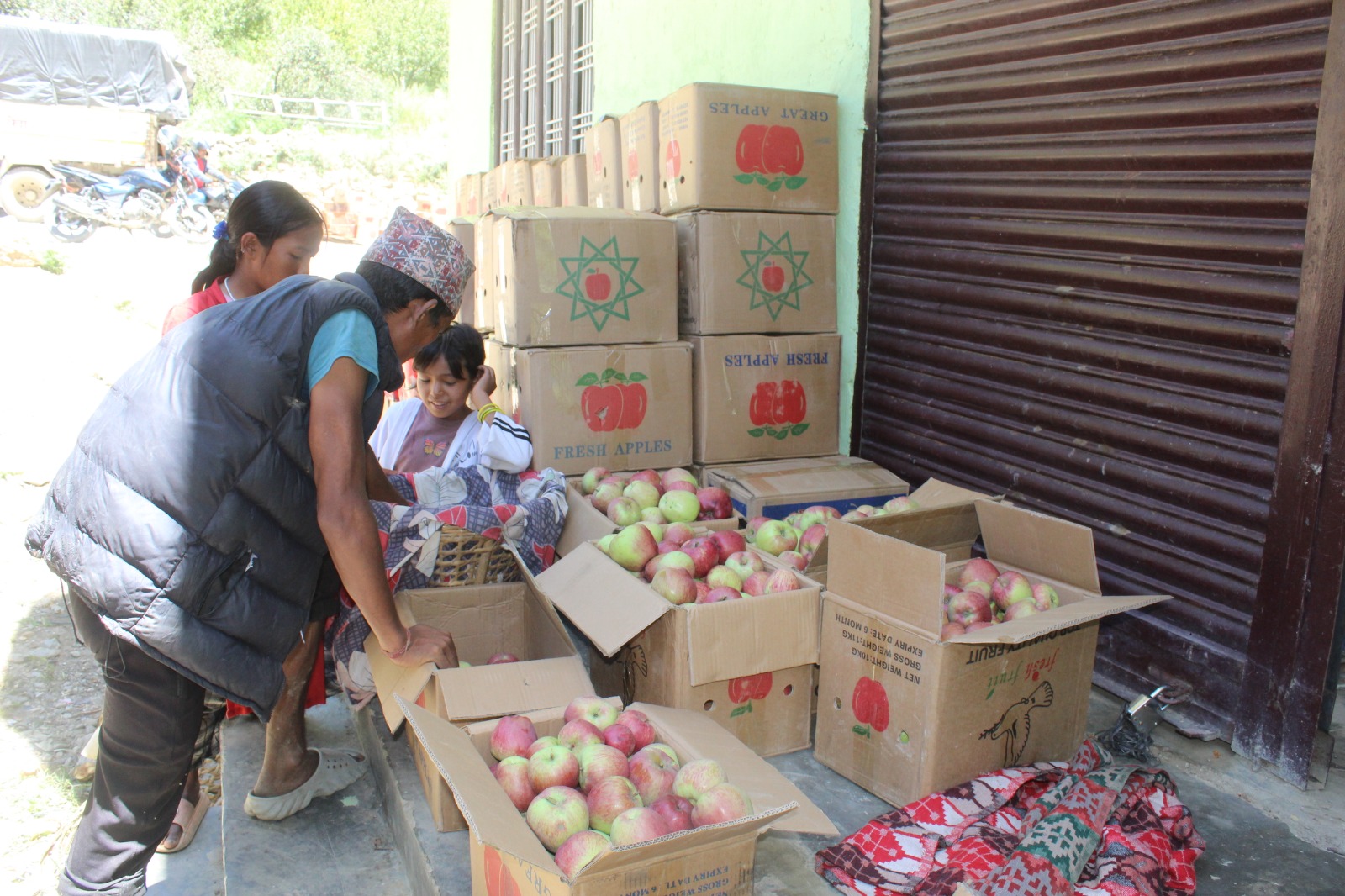 आफ्नै बारीमा फलेको स्याउ प्याकिङ गरिरहेका जुम्लाका कृषक। तस्बिर सौजन्य : डीबी बुढा