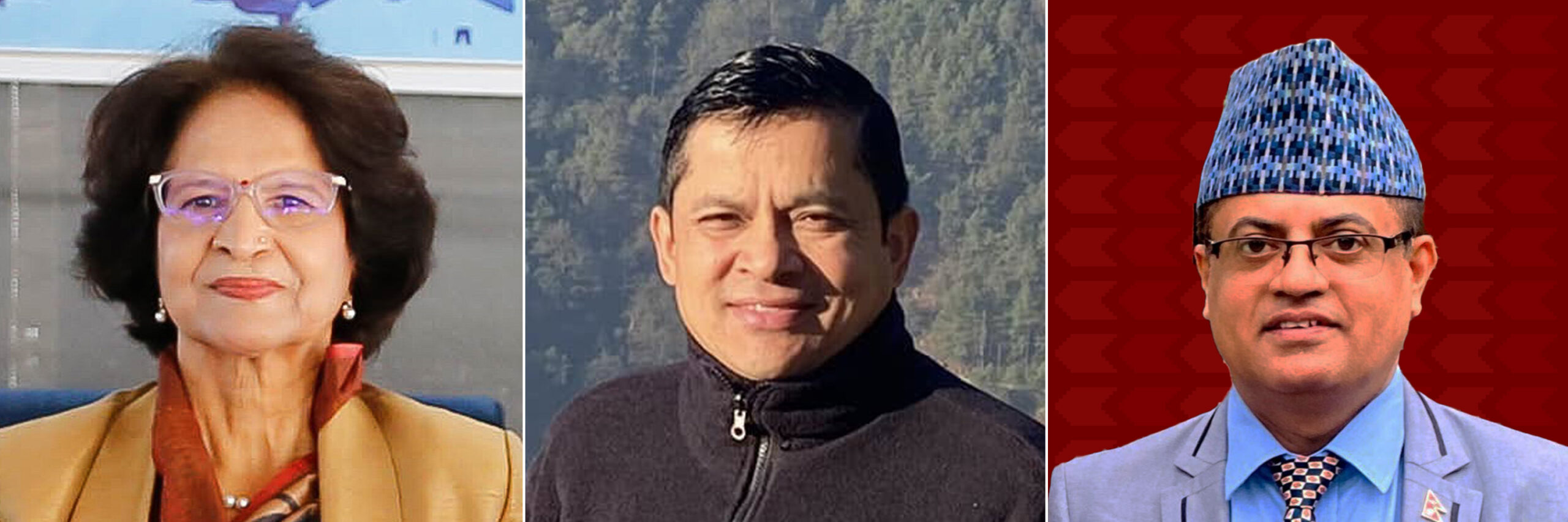 स्वास्थ्यमन्त्री सुधा गौतम‚ स्वास्थ्य बिमा बोर्डका अध्यक्ष चन्द्रबहादुर थापा र बोर्डका कार्यकारी निर्देशक कृष्णप्रसाद पौडेल।